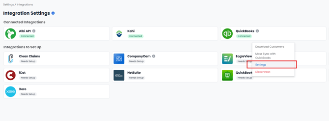 - Go to Settings → Integrations → QuickBooks → Configure.