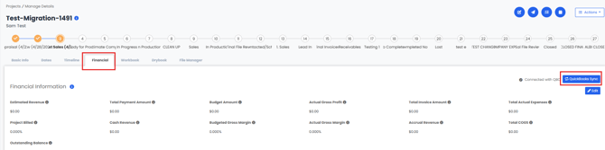 The cleanest way to confirm the integration is working is to create a project and watch it sync to QBO.