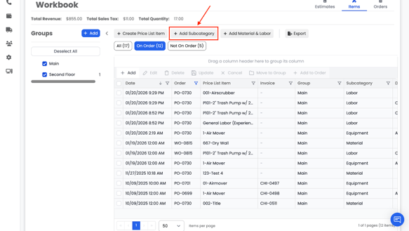 Subcategories help further divide your items into logical sections and become available when creating or editing Price List items.