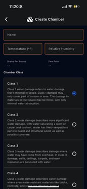 Chamber Classes Eg. Water Damage (Class 1–4)