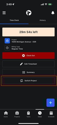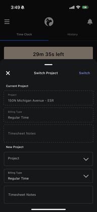 Switch Project allows you to move from one project to another without manually clocking out and back in.