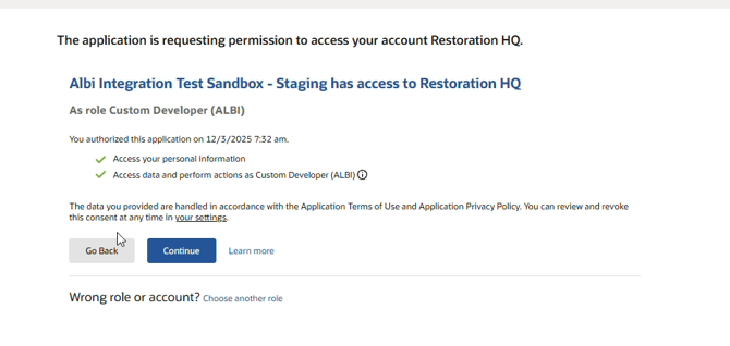 After you click Connect, Albi will redirect you to NetSuite’s authorization screen.