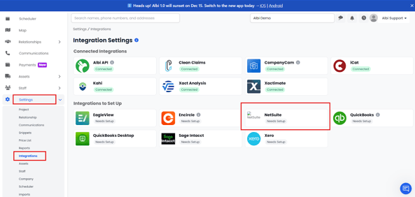 Settings → Integrations → NetSuite