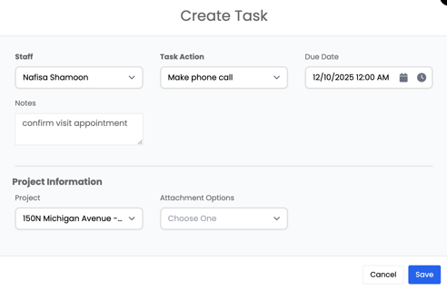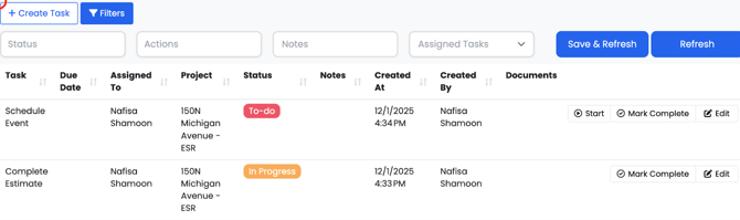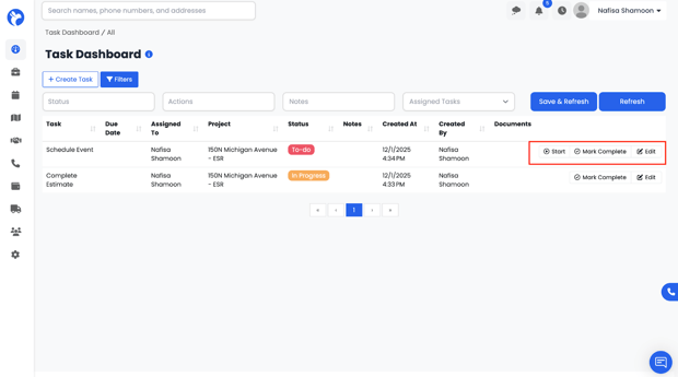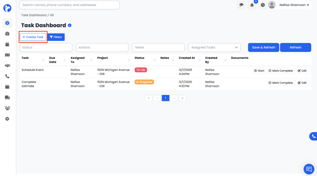 4. Click Save, and the task will immediately appear on the Tasks Dashboard.