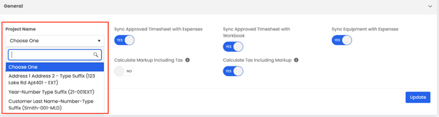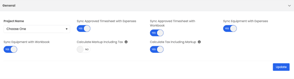 Sync approved timesheets with workbook: when toggled on, all timesheets will be available to add to your items list under the Workbook tab. This allows you to add these expenses to work orders and purchase orders.