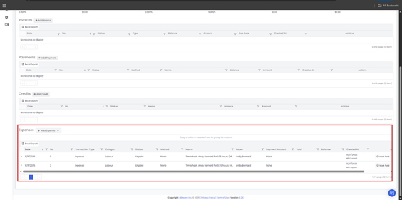 Sync approved timesheets with expenses: when toggled on, all timesheets that have been marked as ‘approved’ will pull into the Financial Tab in the project under the ‘Expenses’ card. This will update the “total actual expenses” KPI on the financial tab.
