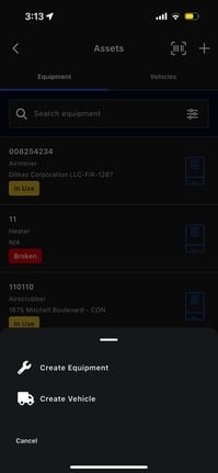 The Assets section in the Albi mobile app is used to manage and track your company’s equipment and vehicles. It allows field and office staff to quickly see what assets exist, their current status, and key details about each item.