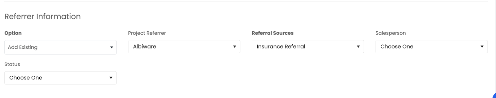 Choose an existing referrer or create a new referrer.