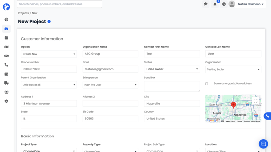 Select the organization associated with the project (for example, a property management company, insurer, or referral partner). - Customer