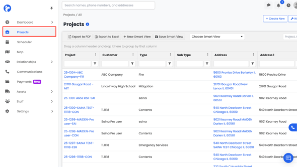 The Projects Dashboard in Albi is the central hub for managing all company jobs. Each project brings together key details such as basic information, relationships, tasks, timeline activity, financials, payment requests, workbook items (estimates, work orders, purchase orders), DryBook documentation, and file storage—making it easy to track progress, manage communication, and keep all project activity in one place.