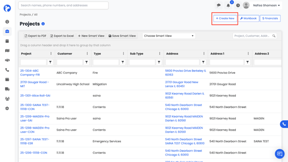 The new project will appear in your Projects Dashboard with all tabs—Timeline, Financials, Workbook, DryBook, File Manager, etc.—ready to use.