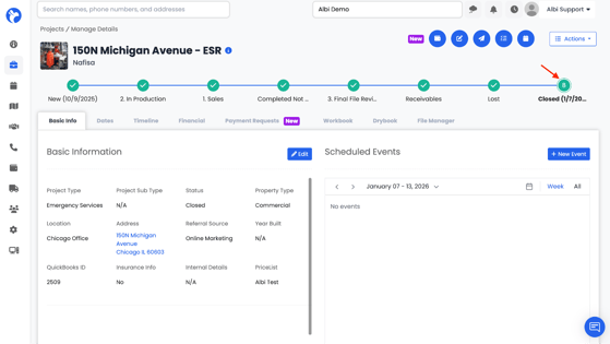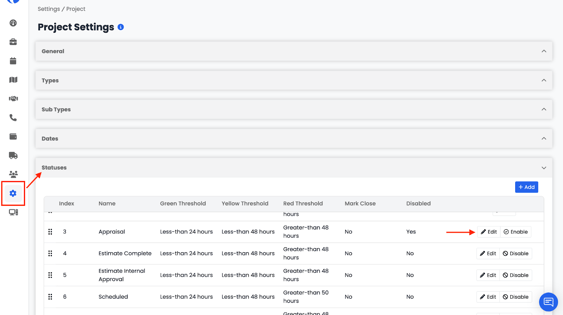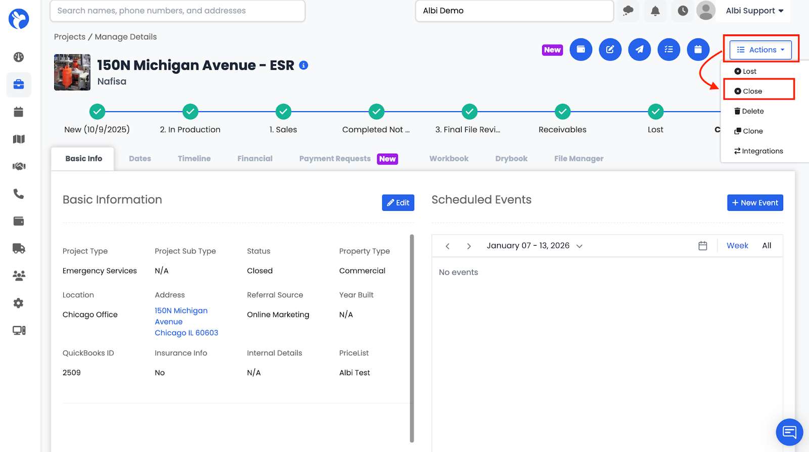 If the “Mark Close” checkbox is selected for a particular status, then when a project reaches that status, Albi will automatically mark the project as Closed.