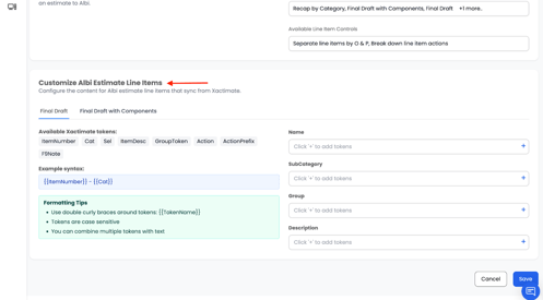 It lets you decide what Xactimate fields map into Albiware columns, using tokens such as: