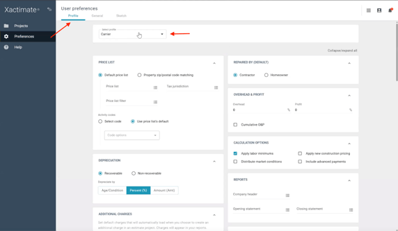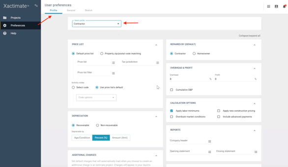 Profiles can have their own configuration in Xactimate (preferences like calculation options, overhead & profit behavior, etc.). If you already have a profile configured “the way you estimate,” choose that one here—this setting mainly decides which profile your synced projects start with.