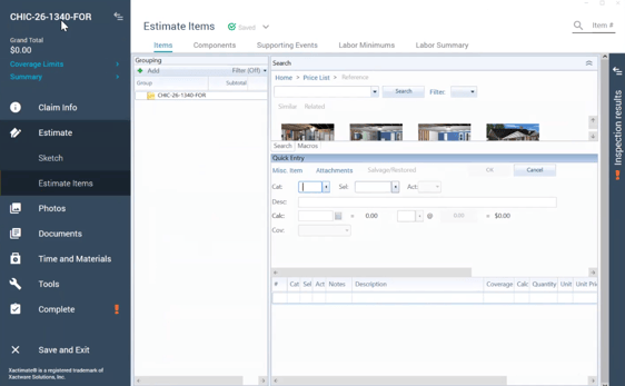 Good to know: Not every Xactimate line item includes all components. Many items only contain material and labor, and available breakdowns depend on the specific line item.
